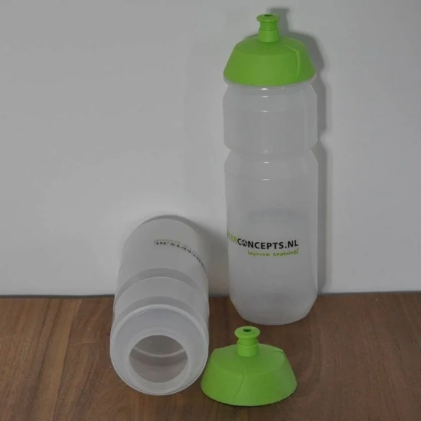 De voetbal waterzak wordt standaard geleverd met twee bidons van 750 ml. Deze bidons hebben een schroefdop en een handige trektuit, zodat sporters snel en eenvoudig kunnen drinken tijdens trainingen en wedstrijden. Samen met de ruime waterzak vormen ze een praktische set waarmee je team ook tijdens intensieve inspanningen goed gehydrateerd blijft. Liever zonder bidons? Dat is ook mogelijk.