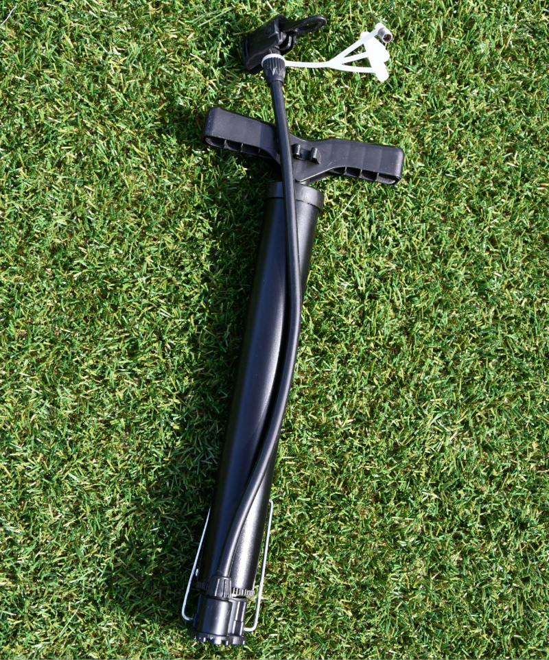Deze pomp is 12,6 inch, maar alsnog super ligt om mee te nemen naar je training of wedstrijd. Door de verschillende hulpstukken die erbij worden geleverd, is deze pomp super multifunctioneel. Je kan er namelijk verschillende ballen mee oppompen, maar ook je fietspomp, opblaasband of luchtbed.