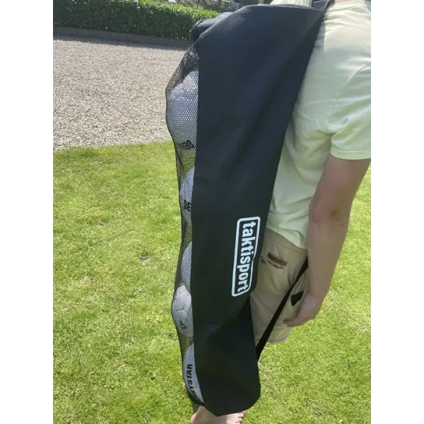 De tas is uitgevoerd in een kokervormig, rechtopstaand model, waardoor de ballen compact en stabiel worden opgeborgen. Met de verstelbare schoudergordel en extra draaggreep neem je de zak comfortabel mee; lopen, in de auto of zelfs op de fiets. Het lichte gewicht van slechts 1 kg maakt het vervoeren extra gemakkelijk.